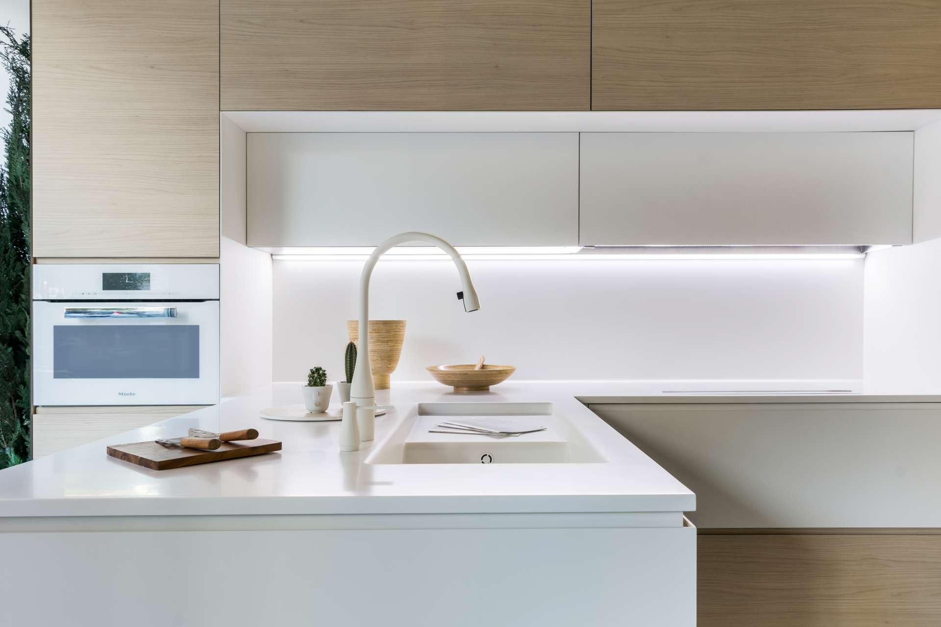El mantenimiento de los muebles construidos con Corian es mínimo ya que, al no ser un material poroso, resiste bien las manchas, que no penetran, y son fáciles de limpiar. Debido a esta ventaja y a la inexistencia de juntas, las superficies de Corian facilitan, como decimos, su limpieza y dificultan el crecimiento de gérmenes. Estas características hacen que este material también sea usado en entornos de asepsia rigurosa, como los quirófanos. Por ello, puedes usarlo en tu baño o cocina con total tranquilidad, teniendo la precaución que mencionábamos anteriormente en cuanto a las temperaturas que pueden soportar sin sufrir daños.
